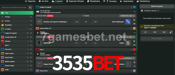 O 3535Bet oferece uma grande seleção de opções de apostas em e-sports com probabilidades competitivas